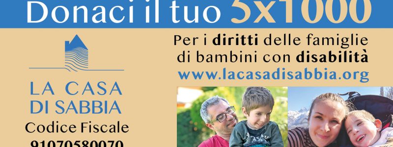 Destinare il proprio 5×1000 all’Associazione La casa di sabbia Onlus non costa nulla, ma vale tanto per le famiglie con i bambini disabili gravi. Sostenere le famiglie oggi significa donare a loro un futuro domani. Dona il tuo 5×1000 per i diritti delle famiglie con i bambini con disabilità con … Leggi tutto Dona il tuo 5×1000