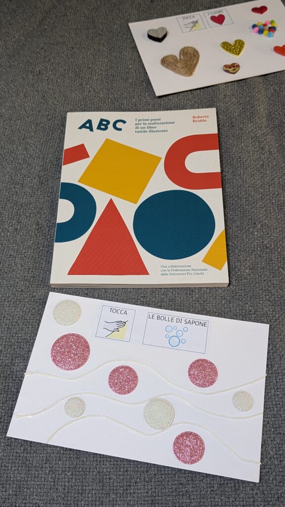 Per realizzare queste cartoline ci siamo lasciati ispirare dal libro ABC – I primi passi per la realizzazione di un libro tattile illustrato, adattando le idee alle esigenze dei nostri piccoli destinatari. Il risultato? Un’esperienza multisensoriale che arricchisce il momento del gioco e dell’apprendimento.