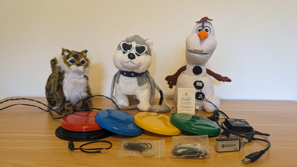 I giocattoli vengono modificati per essere attivati tramite l’utilizzo di pulsanti esterni. Questi pulsanti sono appositamente progettati per persone con disabilità e permettono di comandare le funzioni del giocattolo (suoni, movimenti, luci) senza la necessità di usare la motricità fine. I giocattoli adattati sono spesso standard, acquistati on-line oppure donati dalle famiglie, e vengono trasformati attraverso un processo di studio, di sperimentazione e infine di adattamento.