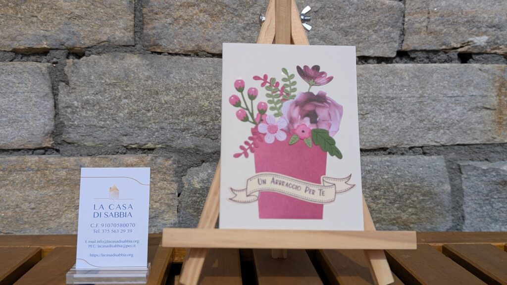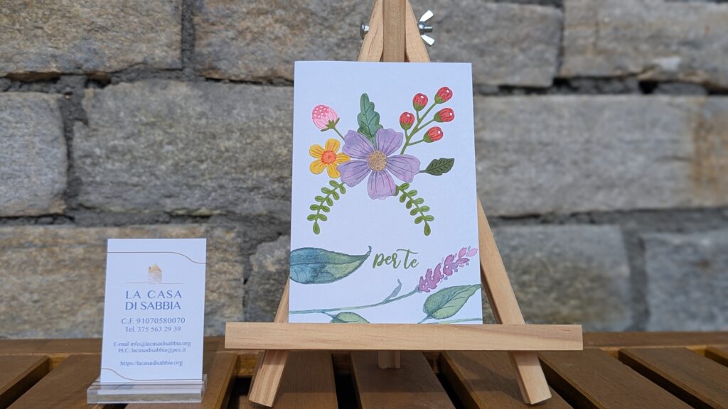 Con una donazione a La casa di sabbia, riceverai il nostro libro illustrato “Cagliostro in montagna” – un’avventura tenera del gatto nero con tre zampe, perfetta per i bambini dai 4 anni – e potrai scegliere una o più cartoline fatte a mano, tutte diverse, tutte fiorite: perfette per Pasqua, per la Festa della mamma o per augurare qualcosa di bello a chi ami.